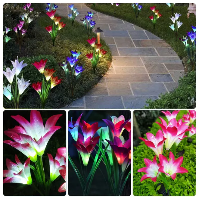 2Pcs Solar Garden Lights Outdoor Lily Flower LED Light